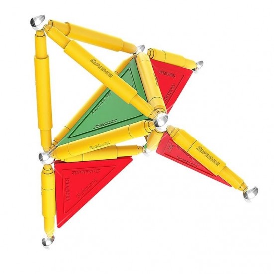 Seturile Supermag sunt caracterizate prin gama variata de piese colorate care urmeaza a fi conectate prin bilute de magnet super solide, astfel contribuind la formarea diverselor modele de figurine.