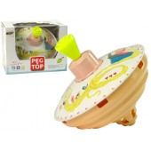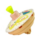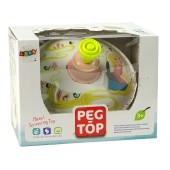 Jocul cu titirezul este atat de simplu si usor. Trebuie doar sa apuci manerul, sa apesi in jos de cateva ori iar jucaria incepe sa se roteasca in jurul axei sale. Pe masura ce se invarte, acesta scoate un sunet vesel si distinctiv care va trezi curiozitatea micutilor.