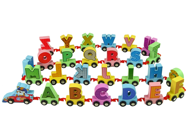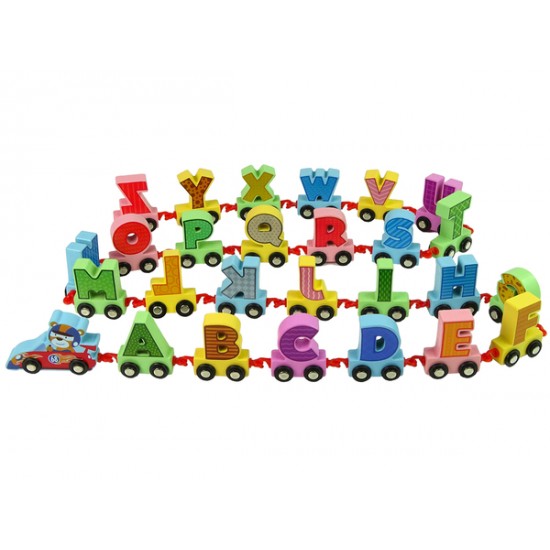Trenuletul din lemn cu vagoane in forma de litere este cel mai interesant mod de a-l invata pe copilas Alfabetul. Jocul il poate motiva pe micut sa isi dezvolte imaginatia, creativitatea sau abilitatile manuale.