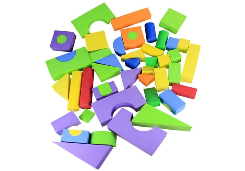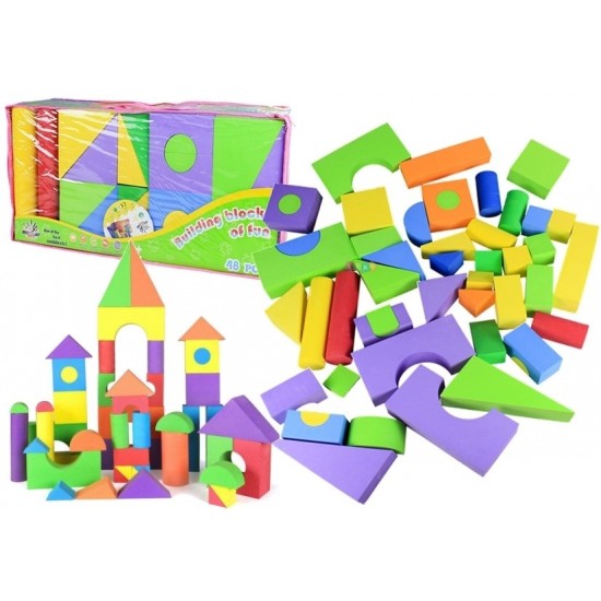 Set blocuri multicolore din spuma diverse forme 48 el.