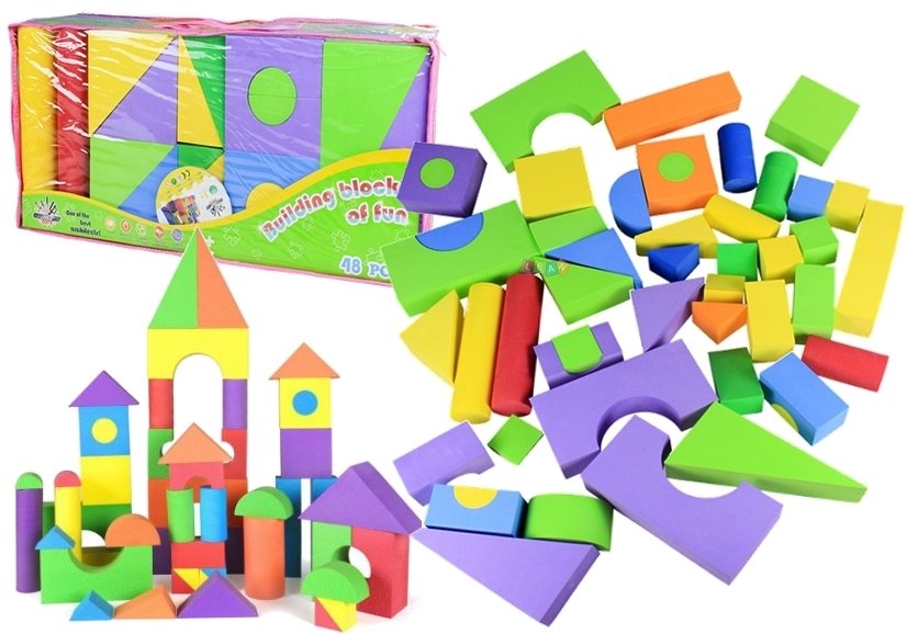 1087 Set blocuri multicolore din spuma diverse forme 48 el.