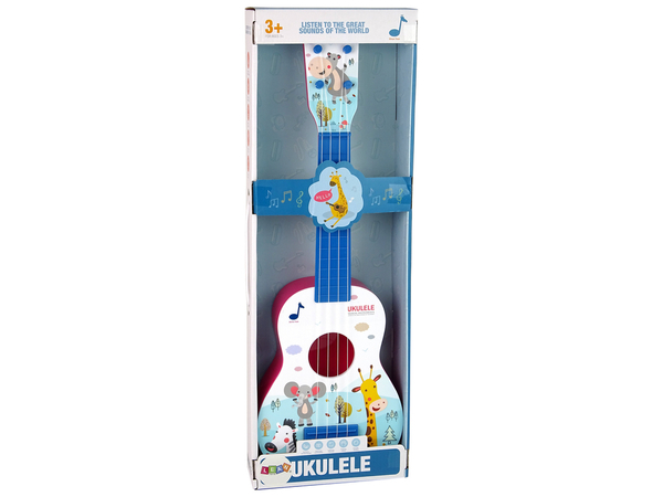 10961 Chitara de jucarie Ukulele roz cu imagini animale