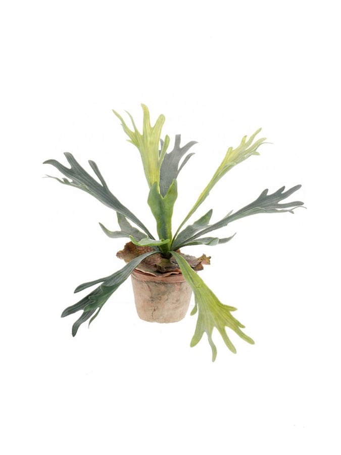Cu un design aparte, feriga Staghorn artificiala de 38cm imita frunzele in forma de coarne de cerb, oferind un efect vizual inedit. Este confectionata din mase plastice si ideala pentru decoruri creative sau pereti verzi.