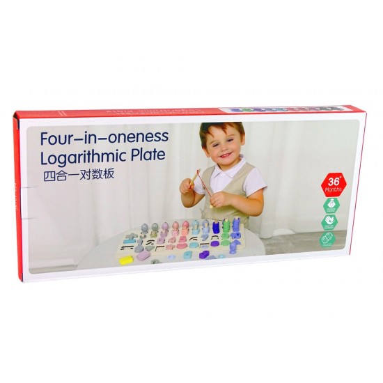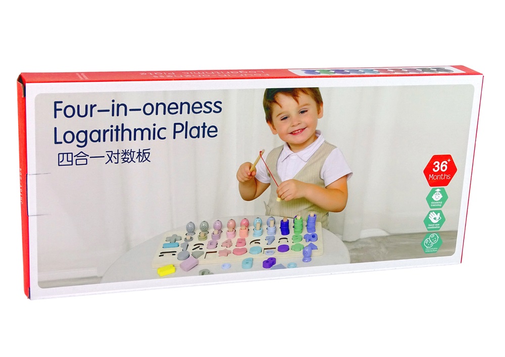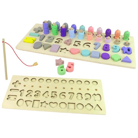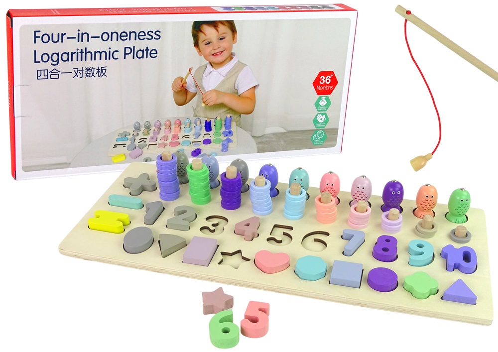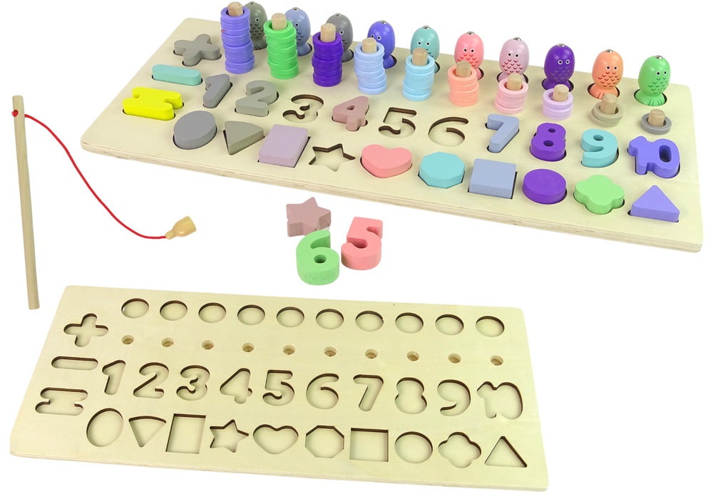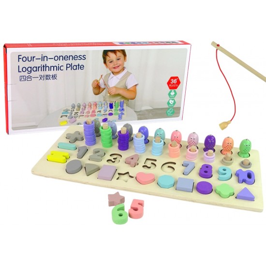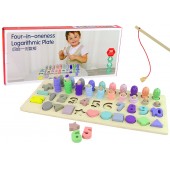 Set educativ din lemn 4in1, cifre, numaratoare, figuri geometrice, pescuit