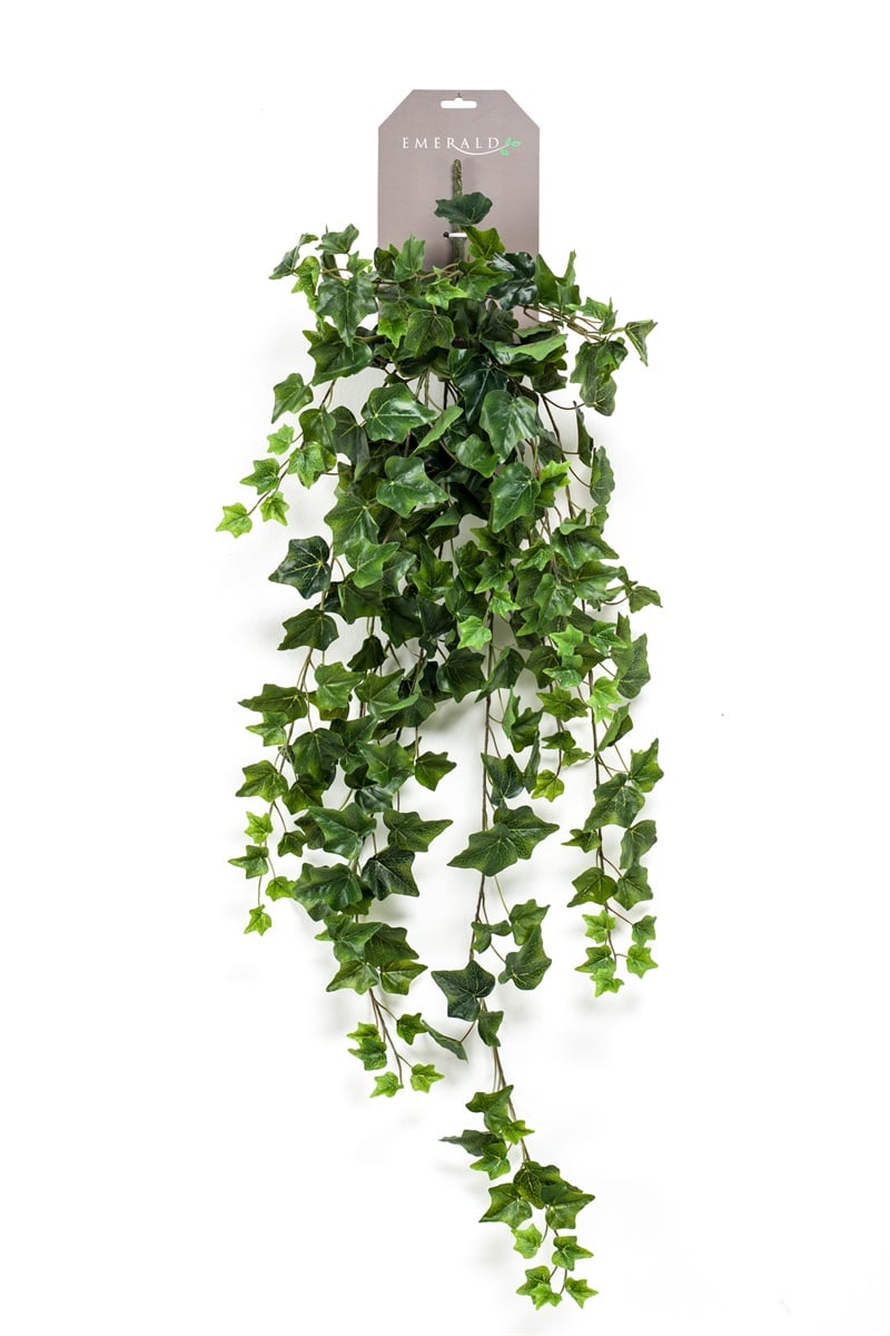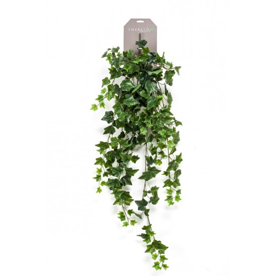 Tufa suspendata artificiala de iedera verde, cu lungimea de 100 cm, este alegerea ideala pentru a aduce un strop de verdeata luxurianta in spatiile interioare. Frunzele bogate si realiste, realizate din mase plastice, transforma orice perete, balustrada sau etajera intr-un colt verde fara intretinere.