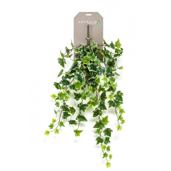 Tufa artificiala suspendata de iedera verde cu margini albe, lunga de 70 cm, aduce un contrast placut si elegant. Frunzele din mase plastice sunt detaliate si realiste, fiind ideale pentru decoruri clasice, rustice sau shabby chic.