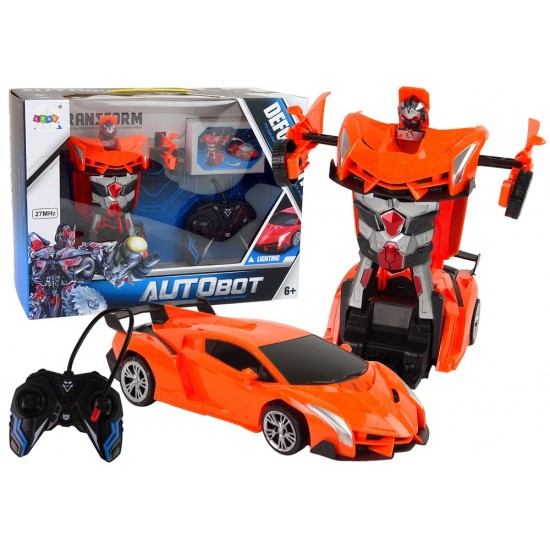 Masina oranj-Robot Transformer cu telecomanda 2in1 cu sunete si lumini, USB