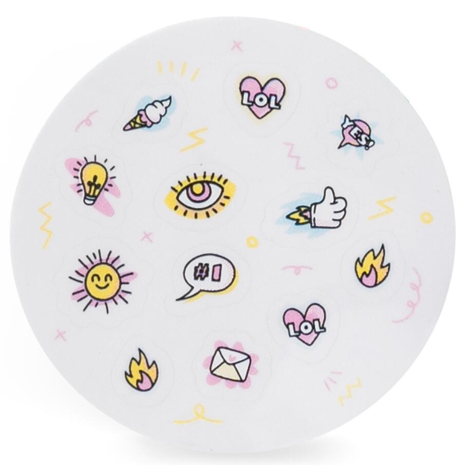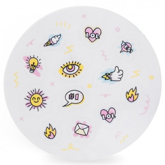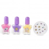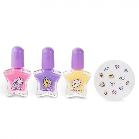 Include trei lacuri de unghii colorate, si decoratiuni in culori si forme asortate. Toate elementele le poti pastra in cutia metalica, foarte comoda de luat cu tine in vacanta.