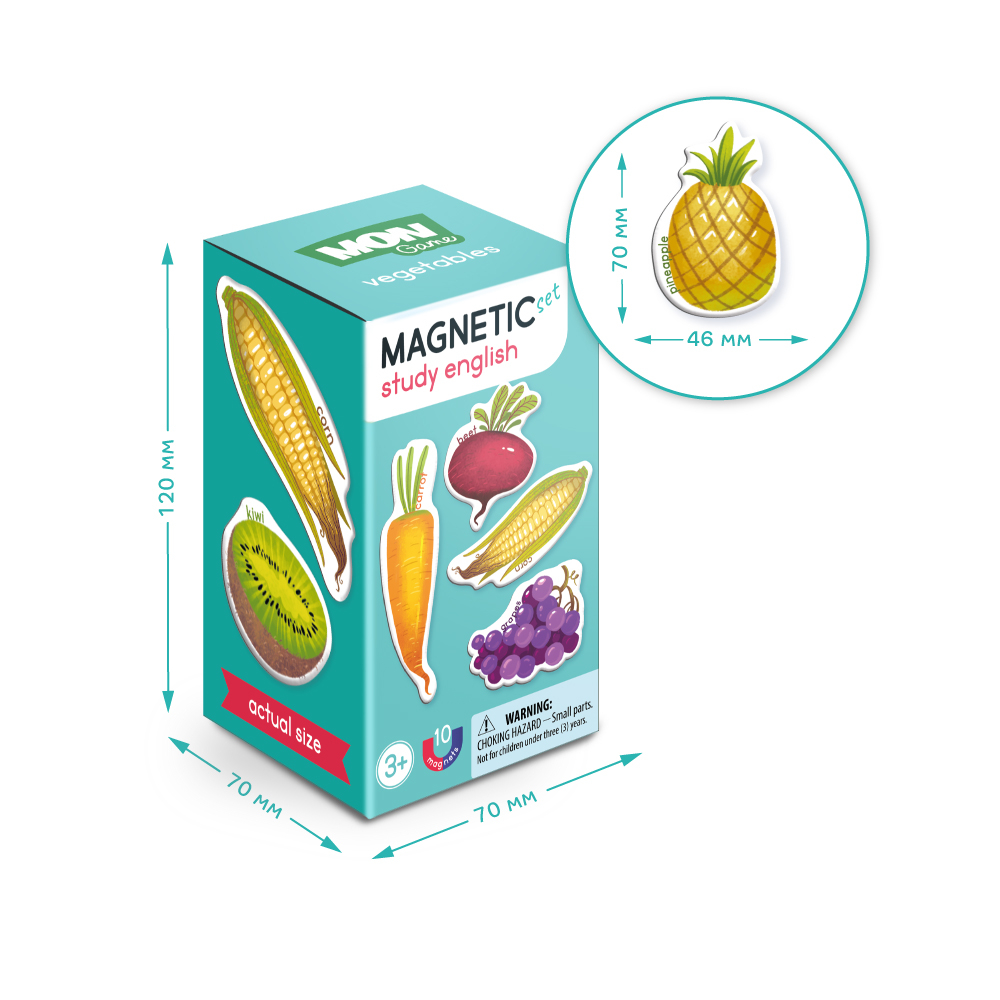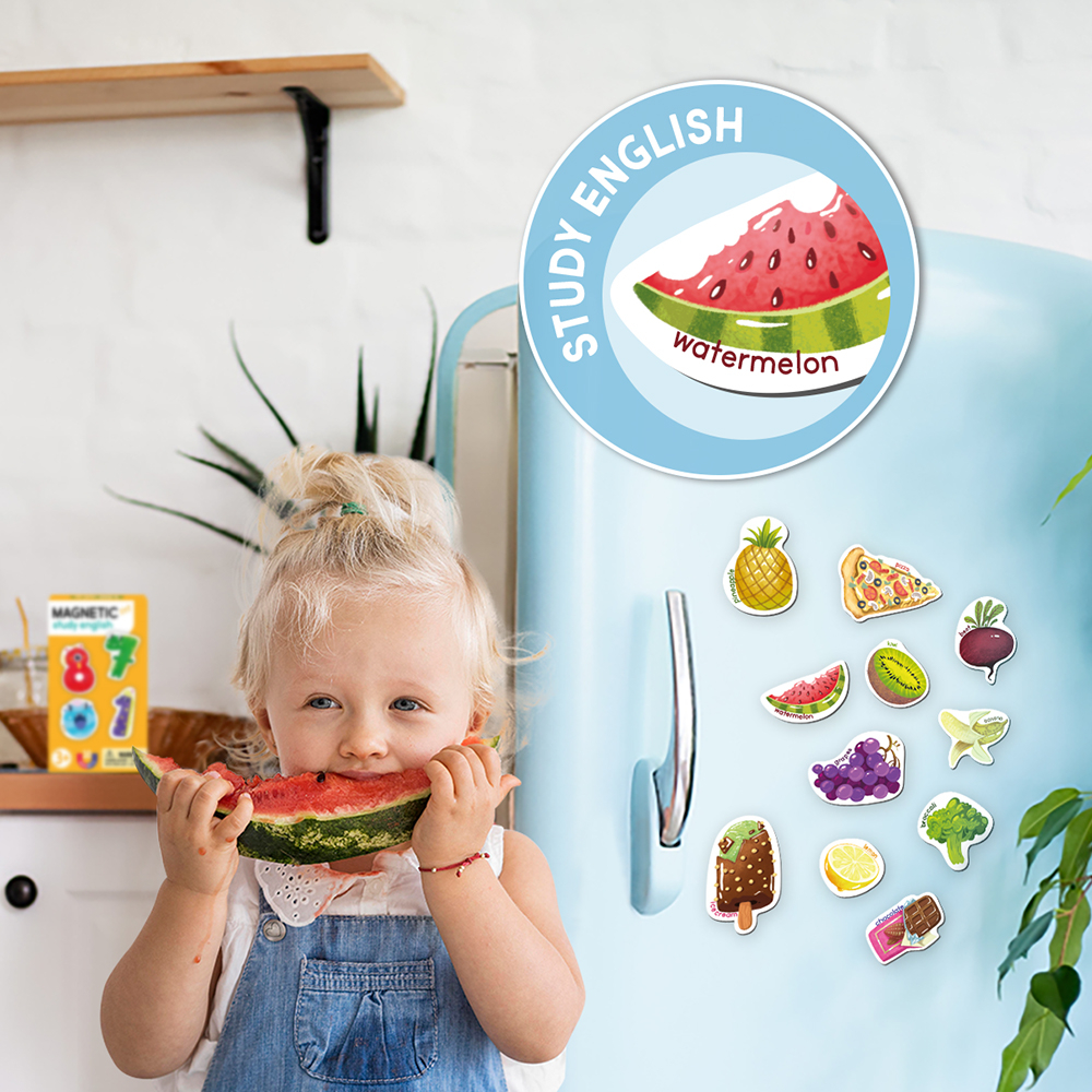 Studiem engleza cu cei mai deliciosi magneti. Uita-te doar la aceste legume si fructe luminoase si suculente. Fiecare magnet descrie o delicatesa si numele sau in engleza.