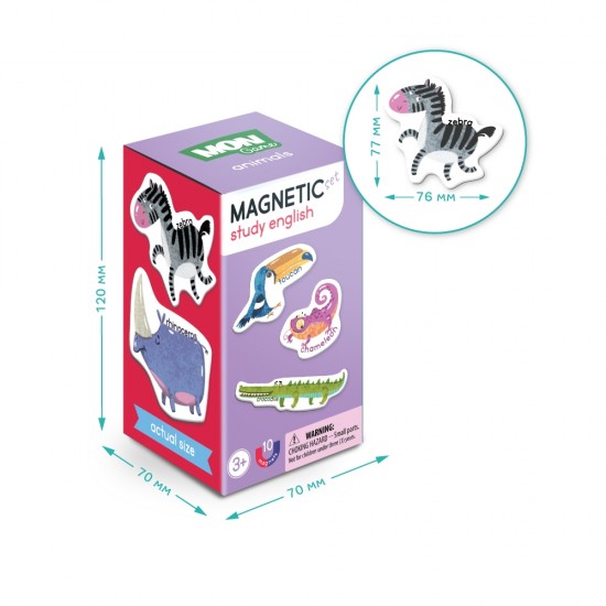Studiem engleza cu cei mai draguti magneti. Uita-te doar la aceste numere stralucitoare si vesele. Fiecare magnet arata un animal stralucitor si numele sau in engleza. Totul pentru ca copiii sa invete engleza intr-un mod rapid si interesant. Acest joc devolta copiilor creativitatea,atentia si motorica.
