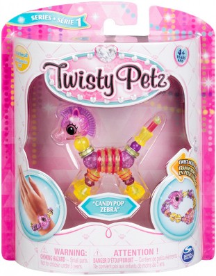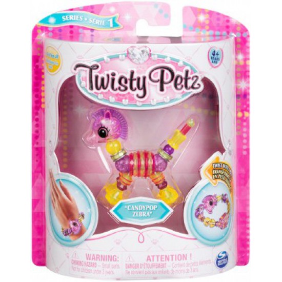 Jucaria Trasnformer Twisty Petz - Zebra Kendi- ca prin magie poare fi transformata intr-o bratara din pietre "pretioase", stralucitoare si la moda. Cu o simpla miscare, zebra se transforma intr-o bratara unica. Tot ceea ce trebuie sa faci este doar sa tragi animalul de coada si de cap, sa unesti cele doua capete - si vei obtine un accesoriu de invidiat pe care il poti purta ca bratara sau ca accesoriu la geanta. Unind trei animalute Twisty Petz unul de altul vei obtine un accesoriu pe care il veti purta ca colier. Datorita colectiei de peste 70 de animalute stralucitoare, acum ai posibilitatea sa colectionezi si sa combini animalutele Twisty Petz, alegind culoarea care se potriveste tinutei sau dispozitiei tale.