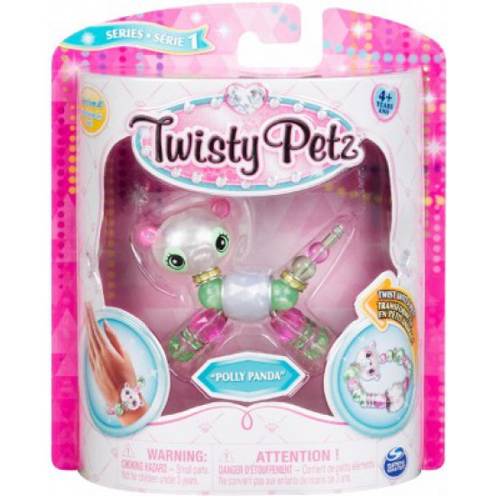 Jucaria Transformer Twisty Petz - Panda Poli - ca prin magie, poate fi transformata intr-o bratara din pietre "pretioase", stralucitoare si in voga. Cu o simpla miscare, Panda Poli se transforma intr-o bratara unica. Tot ceea ce trebuie sa faci este doar sa tragi animalul de coada si de cap, sa unesti cele doua capete - si vei obtine un accesoriu de invidiat pe care il poti purta ca bratara sau ca accesoriu la geanta. Unind trei animalute Twisty Petz unul de altul vei obtine un accesoriu pe care il veti purta ca colier. Datorita colectiei de peste 70 de animalute stralucitoare, acum ai posibilitatea sa colectionezi si sa combini animalutele Twisty Petz, alegind culoarea care se potriveste tinutei sau dispozitiei tale.