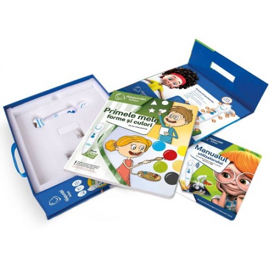 Pachetul contine creionul vorbitor ALBI si cartea Primele mele forme si culori. Lumea inconjuratoare contine o multime de forme si culori. Sara si Tom, fratele ei, te vor invata despre forme si culori cu ajutorul obiectelor pe care le intalnim zilnic in jurul nostru. Stii ce culoare se obtine daca amesteci rosu si albastru? Ce forma are un fagure? Ce este o silueta? In aceasta carte, vei gasi toate raspunsurile si multe altele. Alatura-te prietenilor tai, Sara si Tom! Vom merge impreuna cu cortul, il vom vizita pe vecinul lor magician si ne vom distra impreuna cu ei la balci! Peste 2100 de sunete si texte. Categoria de varsta: 3-7 ani.