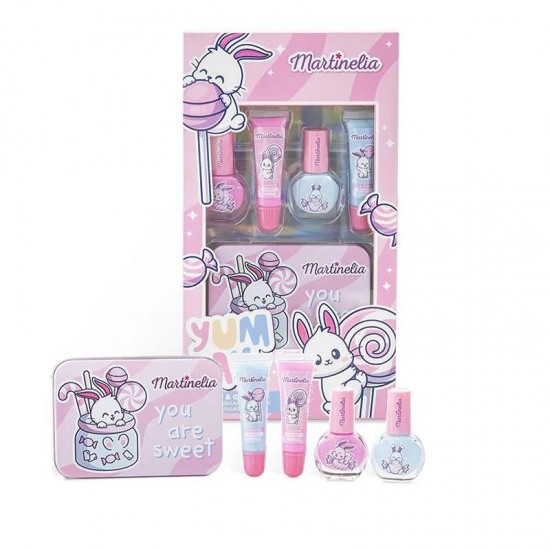 Set 2 balsamuri buze si 2 lacuri unghii 1 cutie metalica Yummy, Martinelia