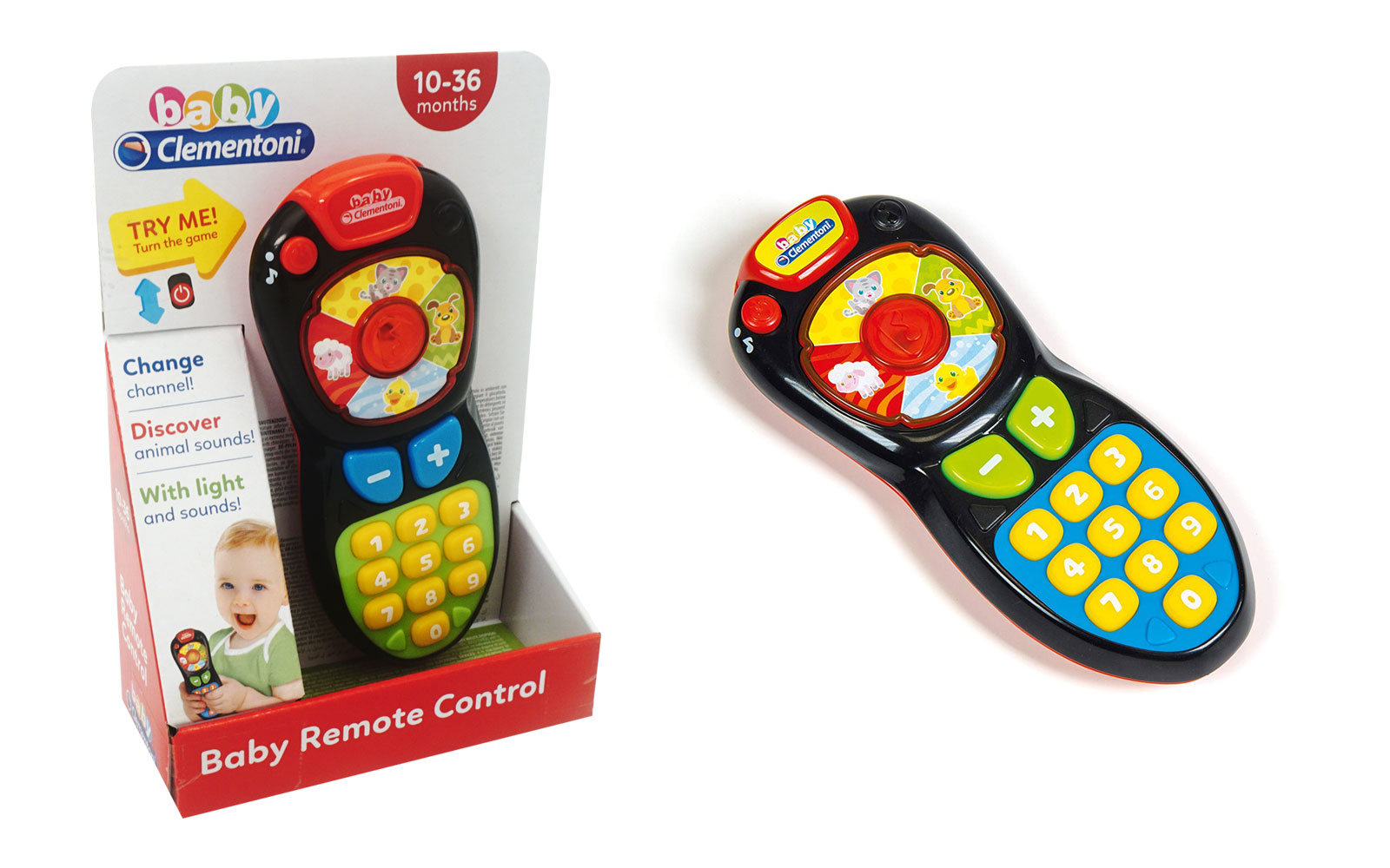 Aceasta are 10 butoane cu cifre si 4 butoane colorate cu animalute, pentru a-l ajuta pe cel mic sa le invete. Prin intermediul efectelor de sunet si lumini, telecomanda stimuleaza perceptia vizuala, auzul si abilitatile manuale.
