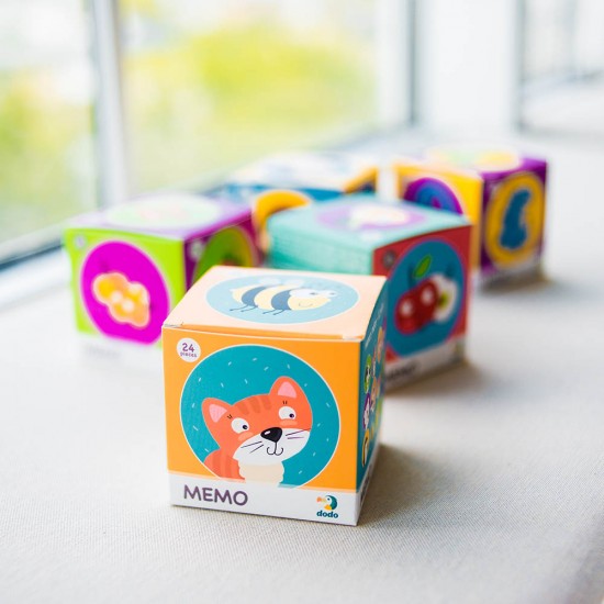Jocul Mini Memo "Animale" este format din carti rotunde din carton laminat.