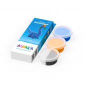 Setul include 3 recipiente cu plastilina de diferite culori, unele dintre ele fiind combinate.