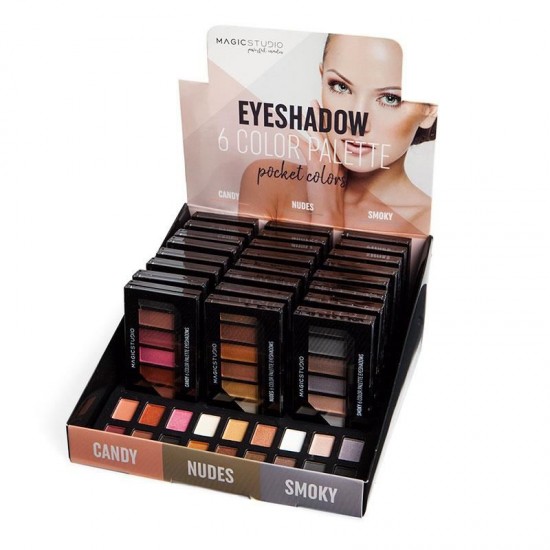 Mini palete de buzunar cu 6 farduri de pleoape. Poarta-le intotdeauna in geanta de toaleta pentru orice retusare de care ai nevoie pe parcursul zilei.