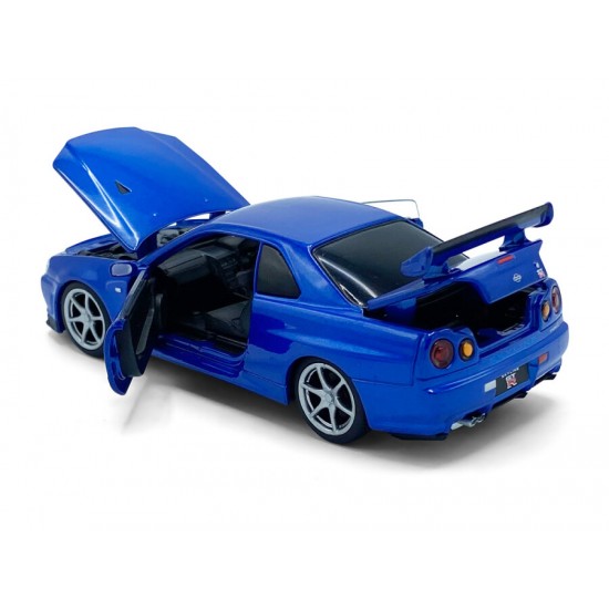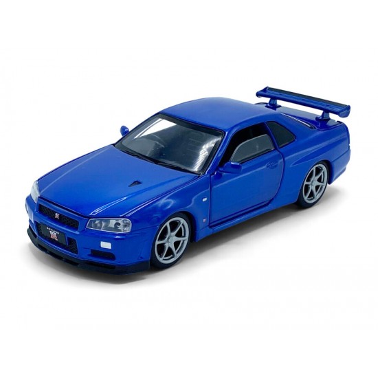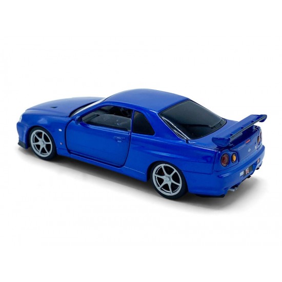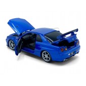 Macheta auto Nissan GT-R34 V-Spec II, 1:32, Blue / RHD mecanism pull-back, lumini si sunet