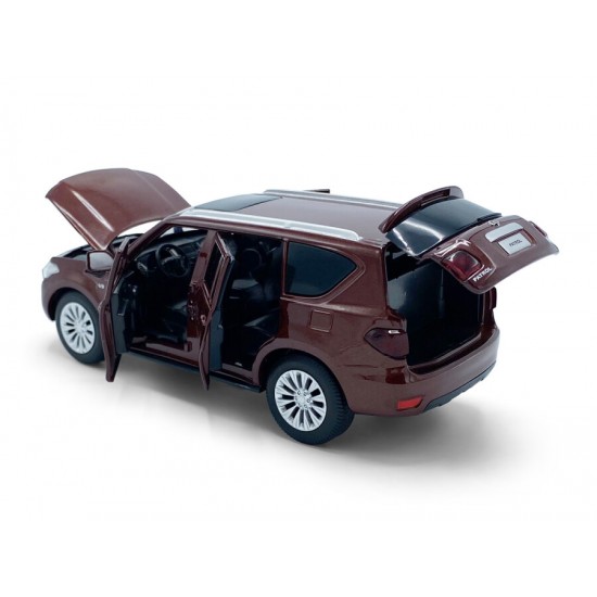 Macheta auto Nissan Patrol Y62, 1:32, Brown mecanism pull-back, lumini si sunet