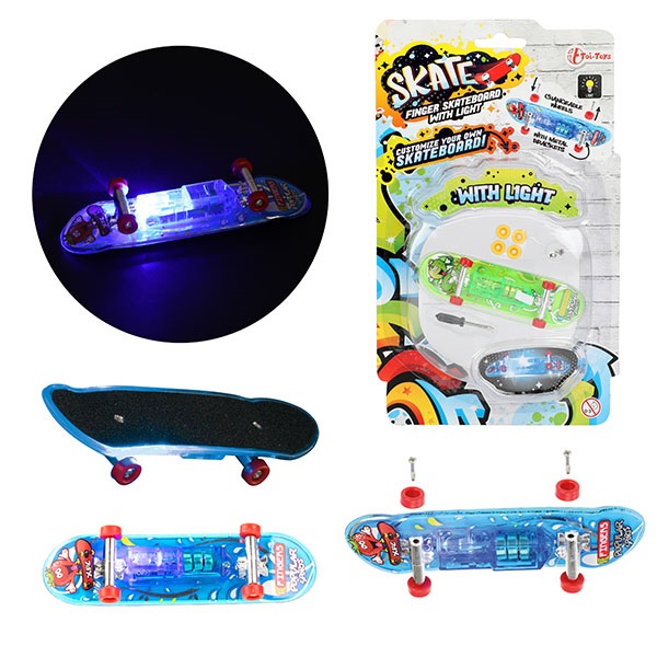 35651Z Finger skateboard cu lumini si roti de rezerva, diverse modele