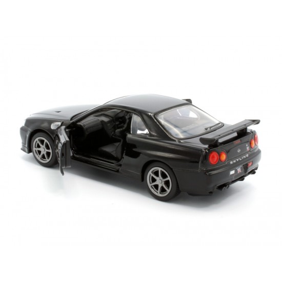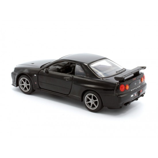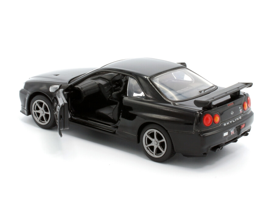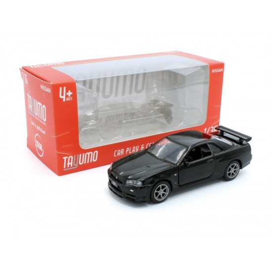 Macheta auto Nissan GT-R34 V-Spec II, 1:36, Black, TAYUMO Mecanism pull-back, sincron