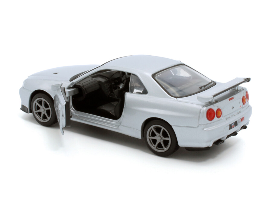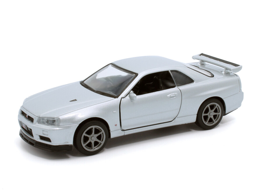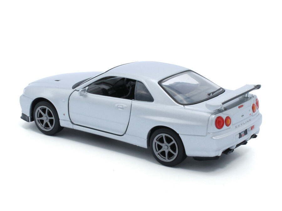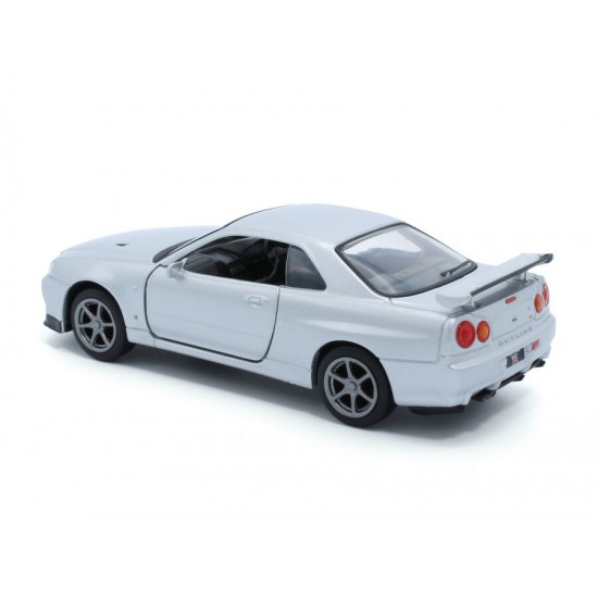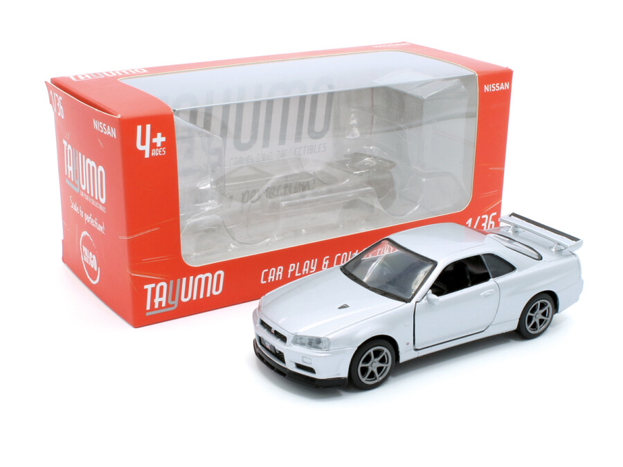 Macheta auto Nissan GT-R34 V-Spec II, 1:36, Silver, TAYUMO Mecanism pull-back, sincron