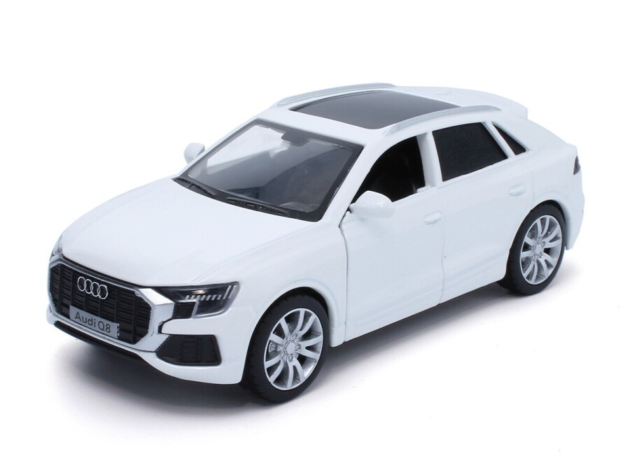 Macheta auto Audi Q8, 1:36, White Mecanism pull-back, sincron