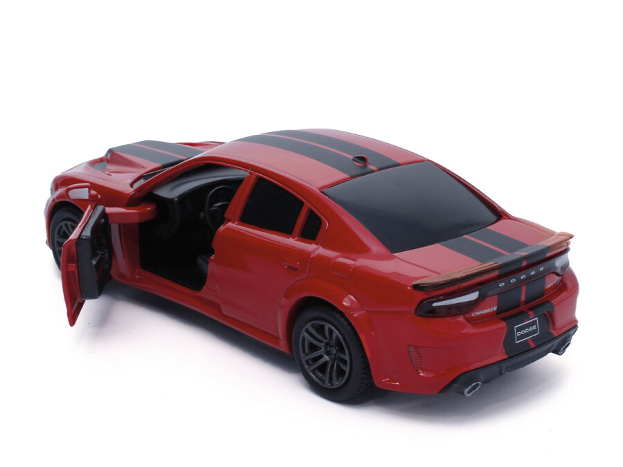 Macheta auto Dodge Charger, rosu cu dungi negre, 1:36, mecanism pull-back, LHD, TAYUMO