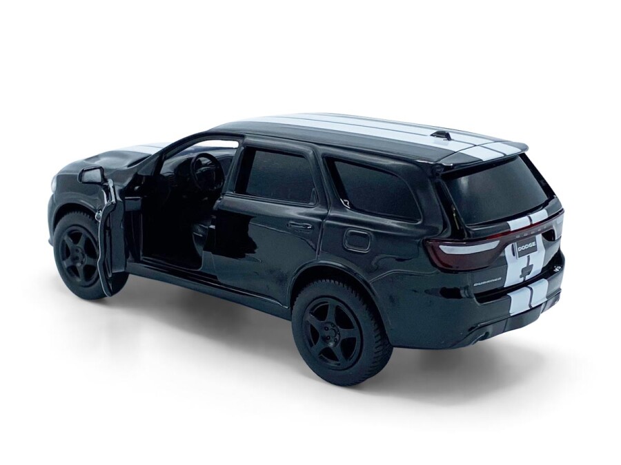Macheta auto Dodge Durango SRT, 1:36, Black / White striping, TAYUMO Mecanism pull-back, sincron