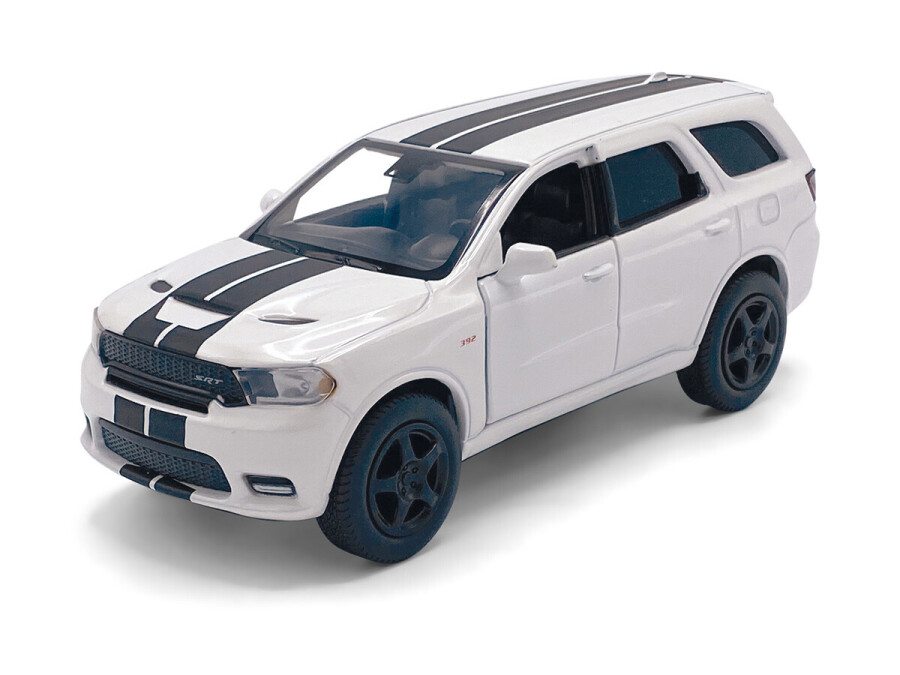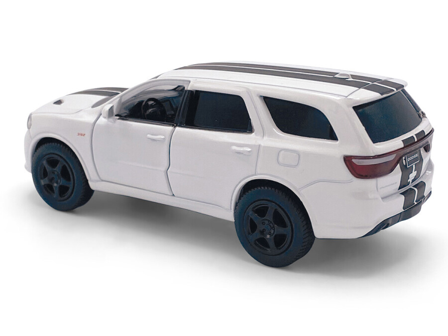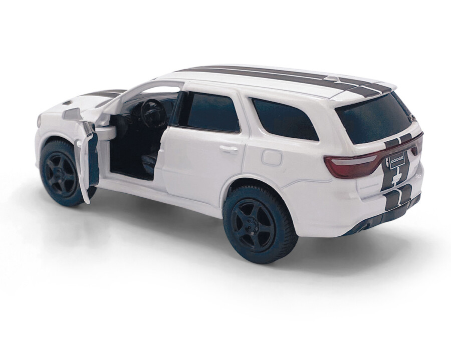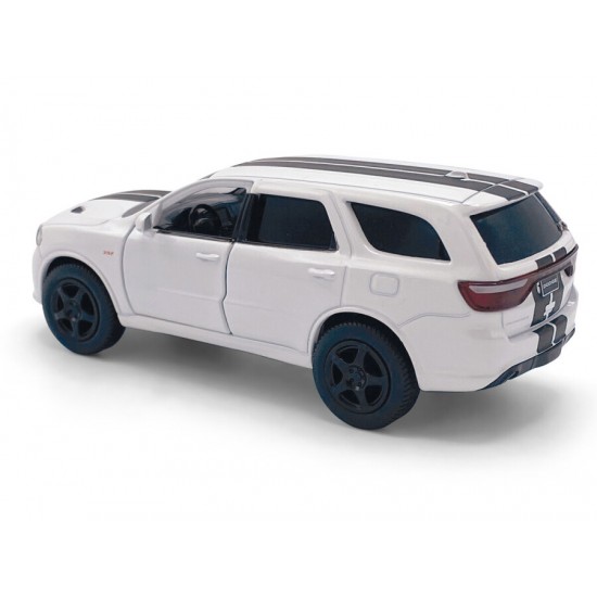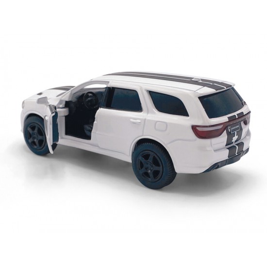 Macheta auto Dodge Durango SRT, 1:36, White / Black striping, TAYUMO Mecanism pull-back, sincron