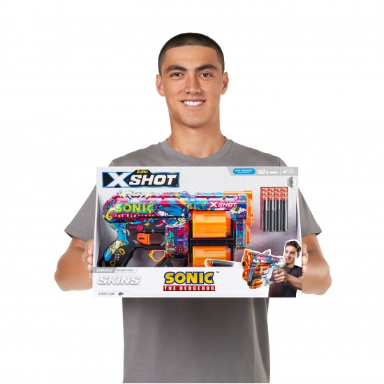 Alege Blasterul X-Shot Skins Dread,Sonic, Robotnik si alatura-te luptei! Acest blaster nu trebuie sa lipseasca din colectia ta. Niciodata nu veti ramane fara munitie. X-Shot Skins Dread are o capacitate de 12 sageti cu doua butoaie rotative. Cand nu va raman sageti intr-un butoi, treceti la celalalt pentru a continua lupta. De asemenea, sunt incluse 12 sageti de spuma.