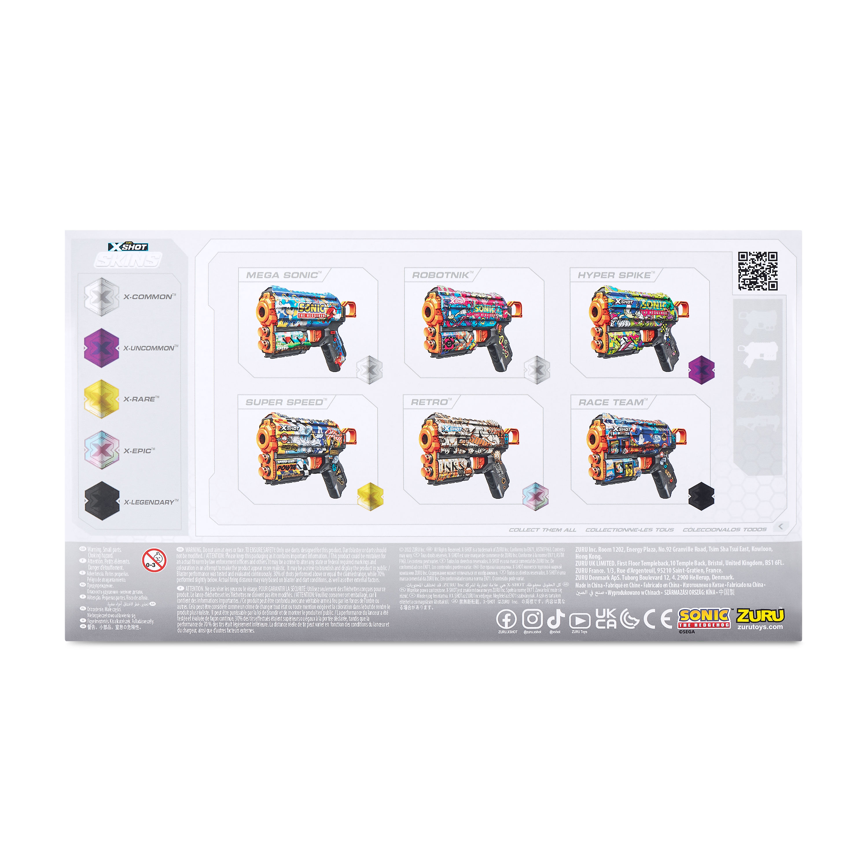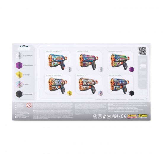 Alege Blasterul X-Shot Skins Flux,Sonic Race Team si alatura-te luptei! Acest blaster nu trebuie sa lipseasca din colectia ta. Are stocare inferioara pentru sageti, astfel incat sa il puteti reincarca rapid si sa va intoarceti in lupta. X-Shot Skins dispun de noua tehnologie Air Pocket pentru impuscaturi mai rapide, mai lungi si mai precise.