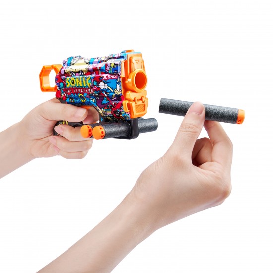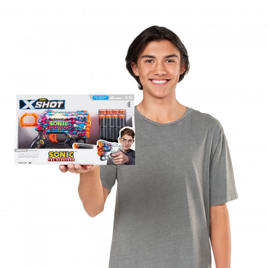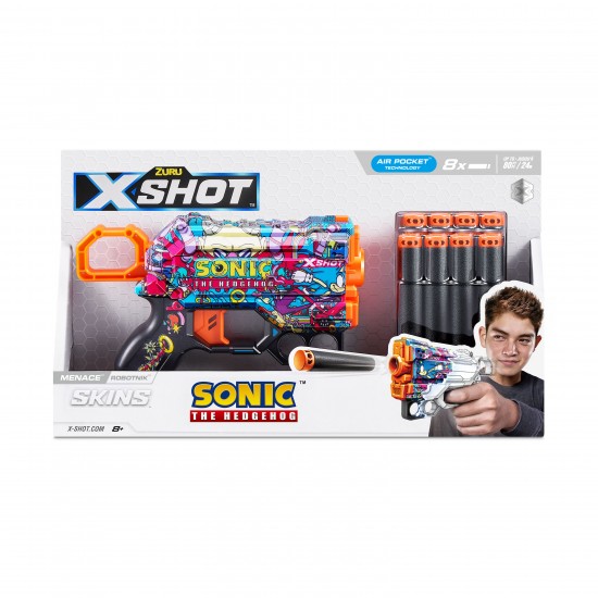 Alege Blasterul X-Shot Skins Menace,Sonic Robotnik si alatura-te luptei! Acest blaster nu trebuie sa lipseasca din colectia ta. Are stocare inferioara pentru sageti, astfel incat sa il puteti reincarca rapid si sa va intoarceti in lupta. X-Shot Skins dispun de noua tehnologie Air Pocket pentru impuscaturi mai rapide, mai lungi si mai precise.