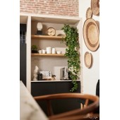 Aceasta tufa artificiala suspendata de iedera, cu o lungime impresionanta de 180 cm, este ideala pentru decoruri spectaculoase. Frunzele lungi si bogate din mase plastice ofera un impact vizual puternic, transformand orice perete sau structura suspendata intr-un punct de atractie.