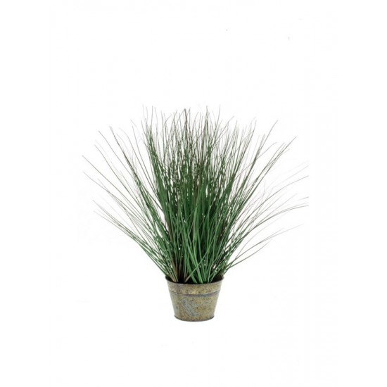 Aceasta iarba artificiala salbatica, cu inaltime de 50cm, este amplasata intr-un ghiveci rustic din zinc. Realizata din mase plastice, aduce o nota naturala si neconventionala spatiului tau.