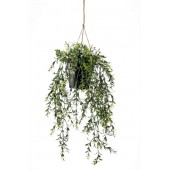 Buxusul artificial suspendat de 65cm este o alegere rafinata pentru decoruri verticale sau spatii restranse. Realizat din mase plastice si amplasat in ghiveci, are un aspect dens si ingrijit.