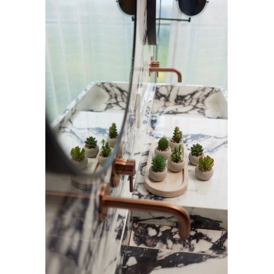 Setul de 6 plante suculente artificiale este o alegere excelenta pentru birouri, etajere sau decoruri minimaliste. Fiecare planta este amplasata intr-un ghiveci de ciment cu diametrul de 6.5cm. Fabricate din mase plastice cu aspect realist.