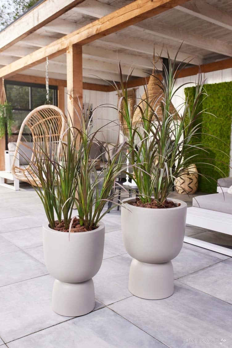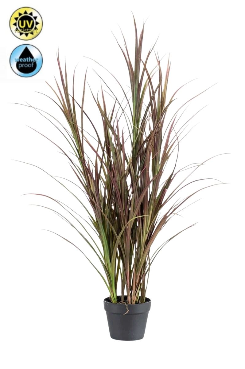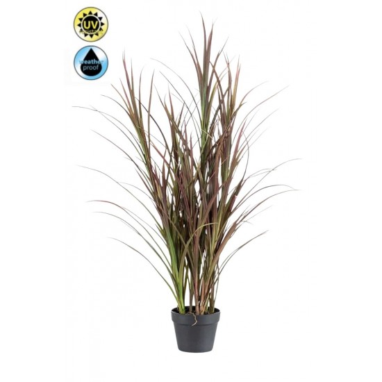 Aceasta planta artificiala de iarba, cu tonuri visiniu si verde inchis, are o inaltime de 115 cm si este ideala pentru decorul exterior. Ghiveciul inclus si materialul rezistent la UV o fac durabila si gata de utilizare.