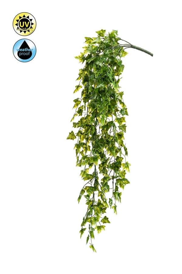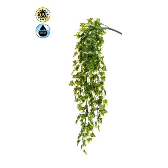 Aceasta tufa suspendata artificiala de iedera, lunga de 75 cm, ofera un aspect elegant si natural oricarui spatiu. Fabricata din mase plastice si tratata UV, este ideala pentru decoruri verticale sau terase insorite.