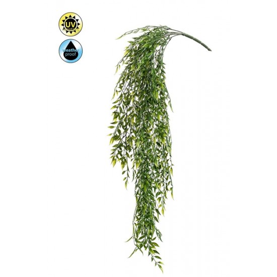 Aceasta tufa suspendata artificiala din bambus mixt, de 80 cm, este ideala pentru terase, balcoane sau spatii comerciale. Cu rezistenta UV si un aspect bogat, este confectionata din mase plastice care imita perfect frunzisul natural.