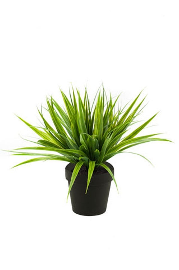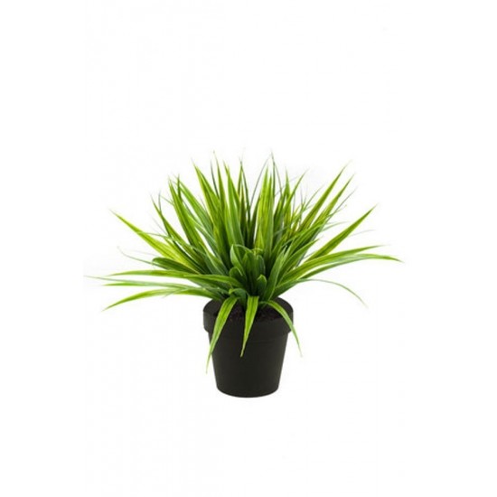 Tufa de iarba artificiala verde, cu inaltimea de 32 cm, este ideala pentru a aduce natura in spatiile interioare. Frunzele din mase plastice au un aspect realist si sunt montate intr-un ghiveci negru simplu si modern.