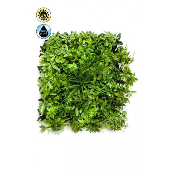 Adauga un aer tropical cu acest covoras artificial Schefflera, cu dimensiunea de 50x50 cm. Realizat din mase plastice si tratat pentru rezistenta UV, este ideal pentru pereti verzi decorativi, atat la interior cat si exterior.