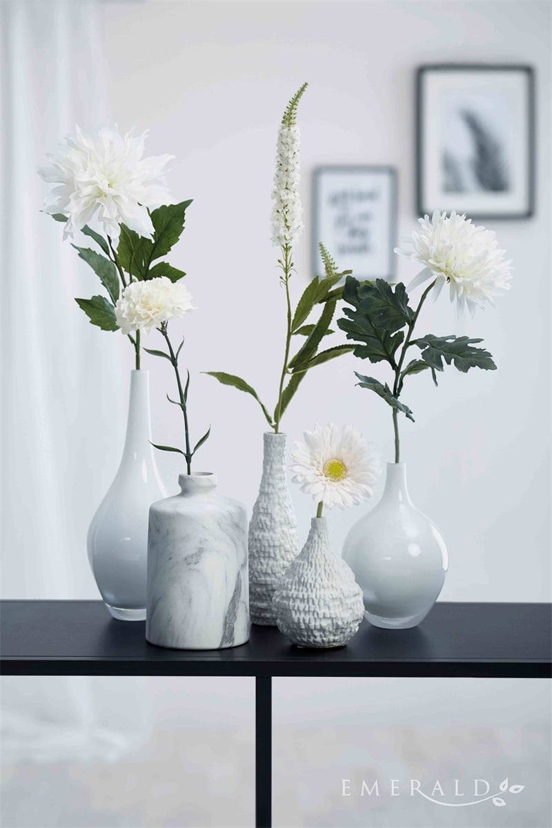 Garoafa artificiala alba de 67cm este simbolul puritatii si rafinamentului. Realizata din mase plastice de calitate, aceasta floare eleganta se potriveste perfect atat in buchete festive, cat si in decoruri minimaliste.