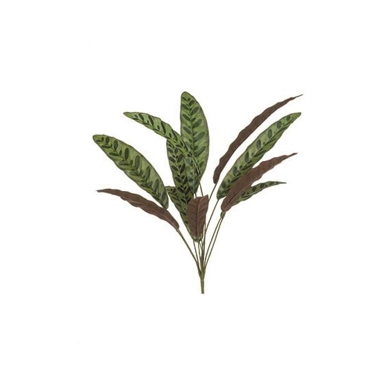 Tufa artificiala Calathea, 11 frunze, verde/bordo, 70cm