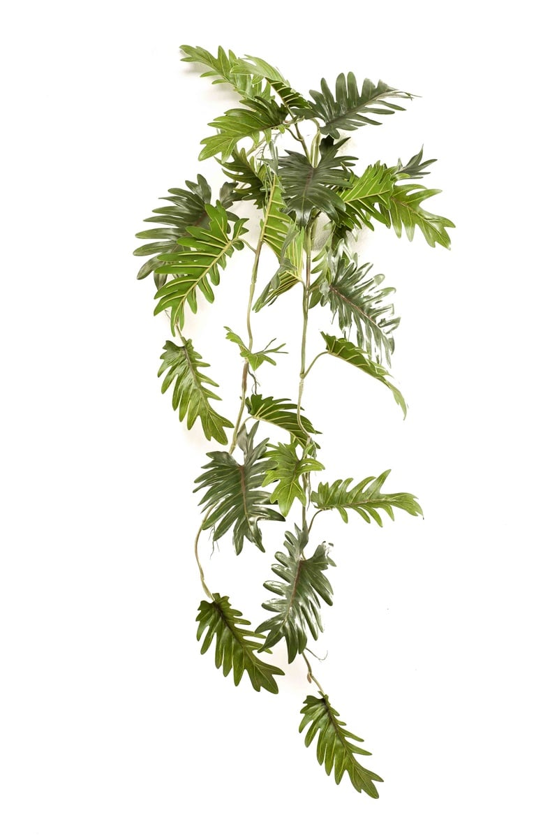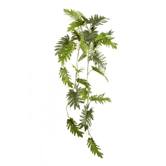 Tufa suspendata artificiala de filodendron are o lungime de 90 cm si frunze late, cu nervuri vizibile. Realizata din mase plastice, planta reda fidel structura naturala si este potrivita pentru decoruri moderne, tropicale sau industriale.