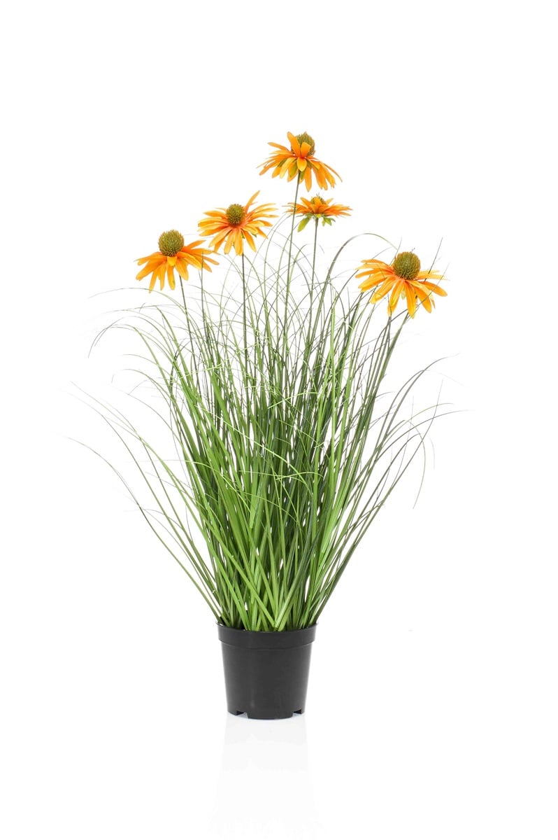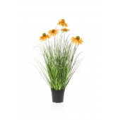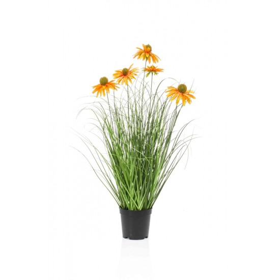 Planta artificiala Rudbeckia cu iarba, portocalie, in ghiveci, 60cm