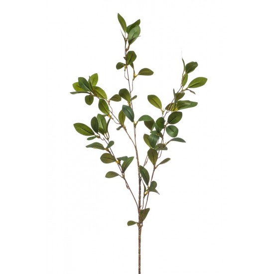 Ramura artificiala de Ruscus cu 5 crengute delicate si o lungime de 90cm este perfecta pentru decoruri moderne sau rustice. Fabricata integral din mase plastice.