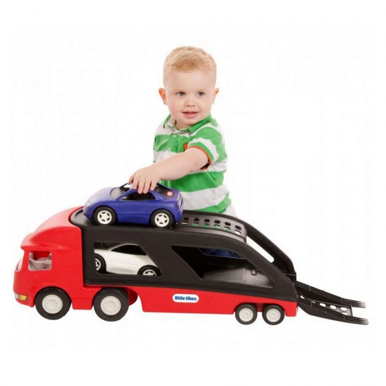 Transportatorul de masini de la Little Tikes este jucaria ideala pentru copiii pasionati de masini. Camionul este dotat cu rampa pentru incarcarea a doua masini sport.