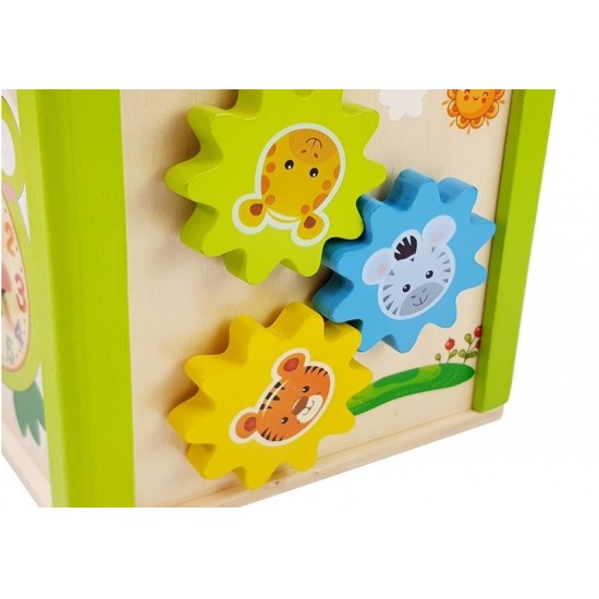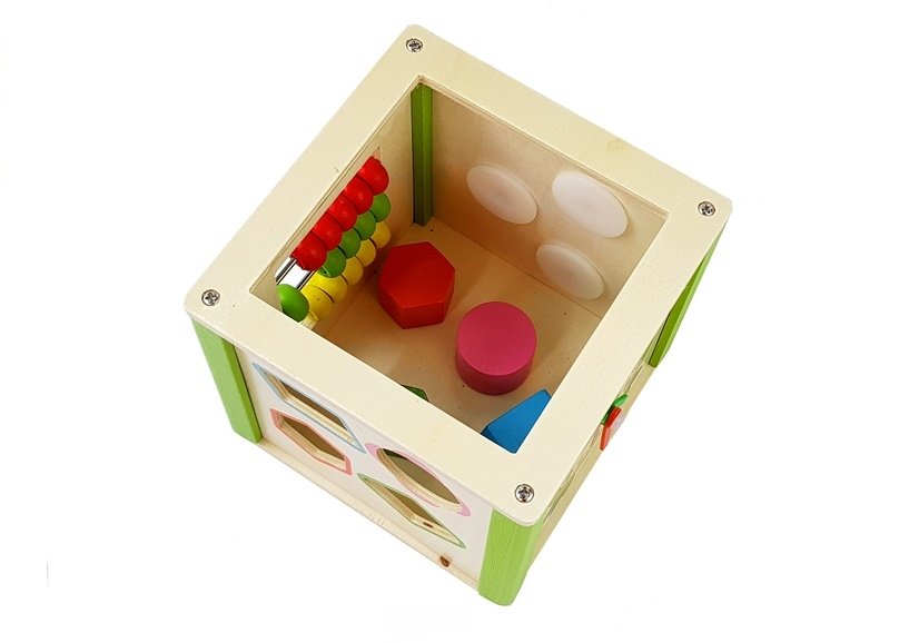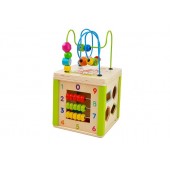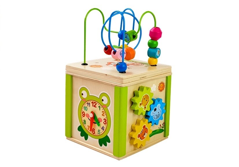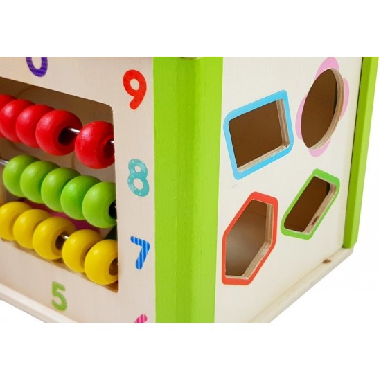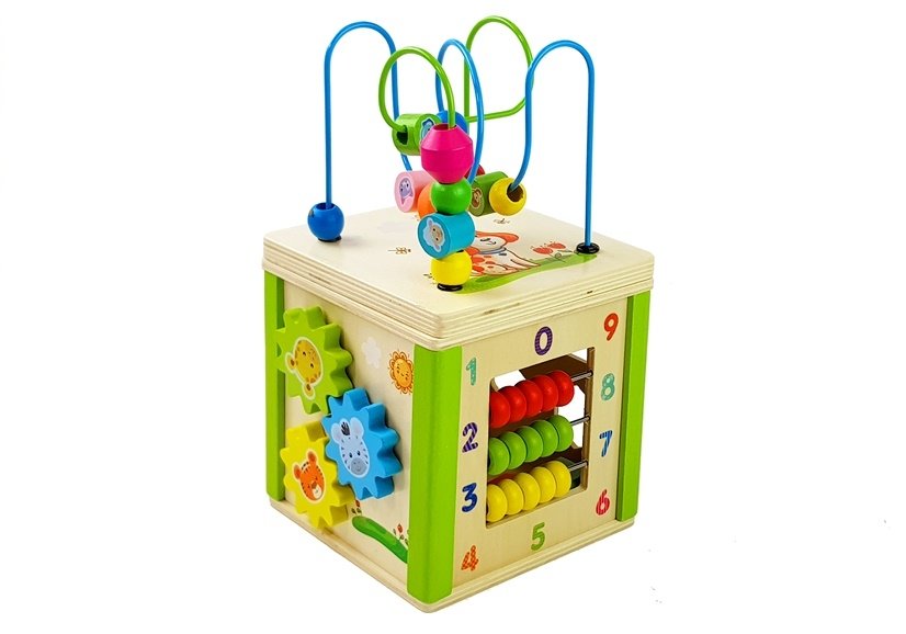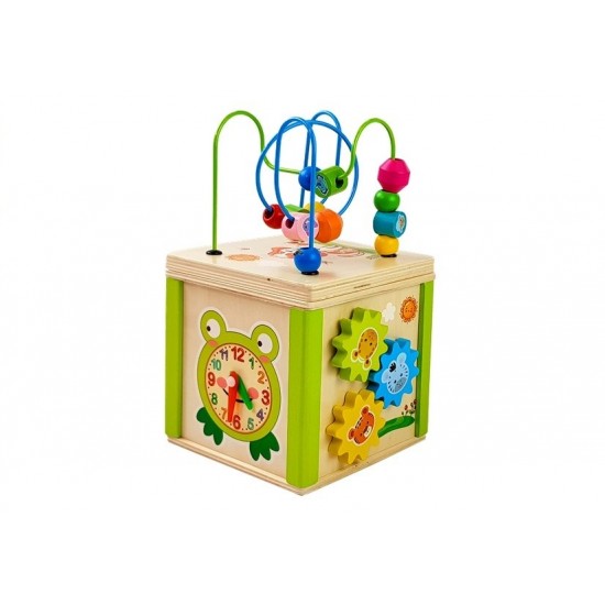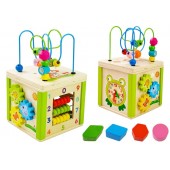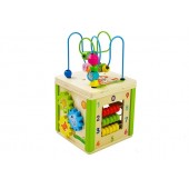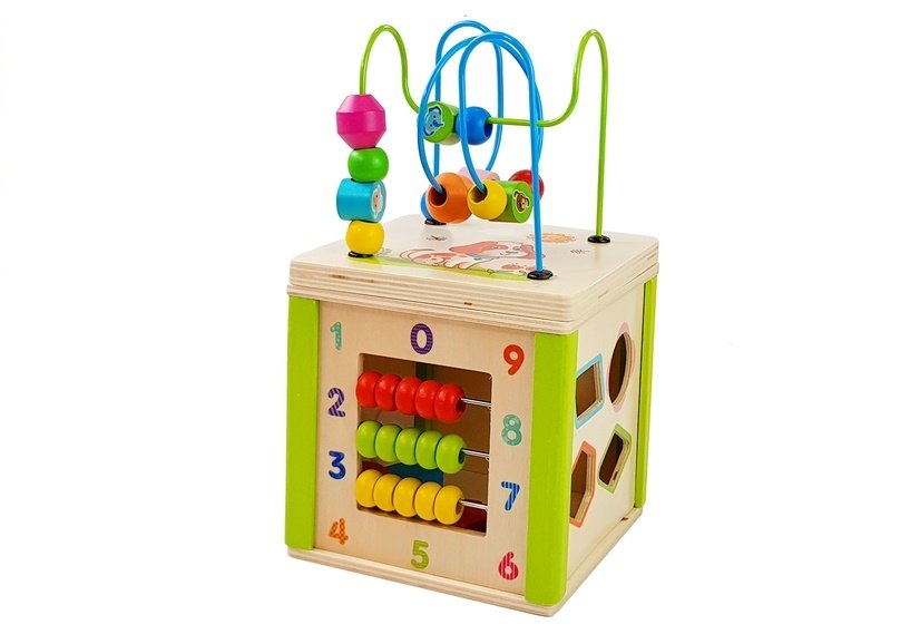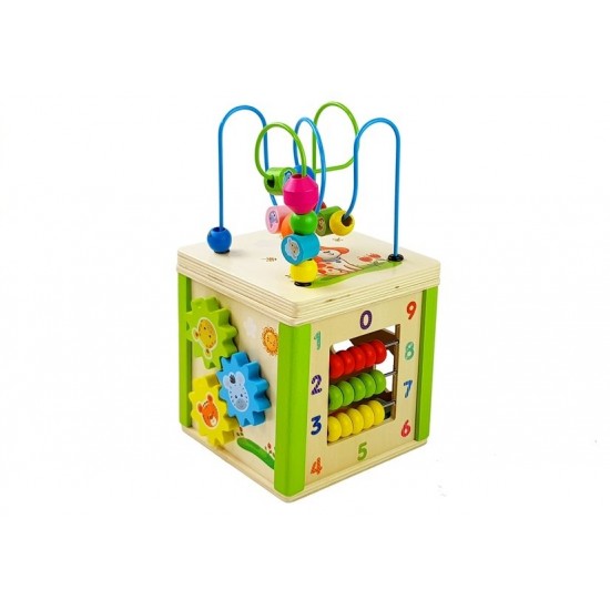 Cub educational din lemn cu sorter si labirint